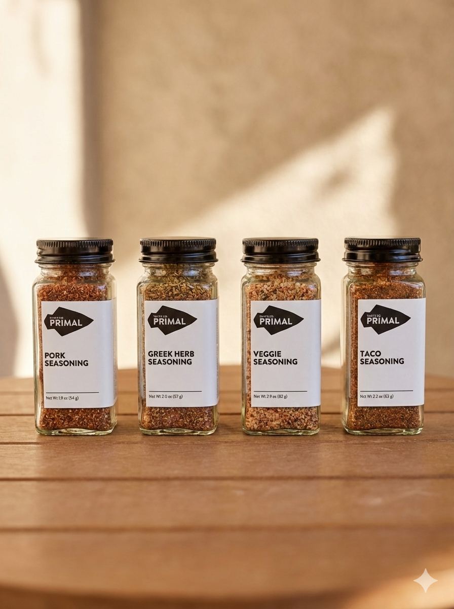 After months of testing and tasting, I am proud to finally offer you the That’s So Primal Seasoning Line. These are the exact blends I use to turn basic proteins and veggies into meals you actually look forward to eating. If you’re curious about the ingredients we avoid, you can read more about our food philosophy here.